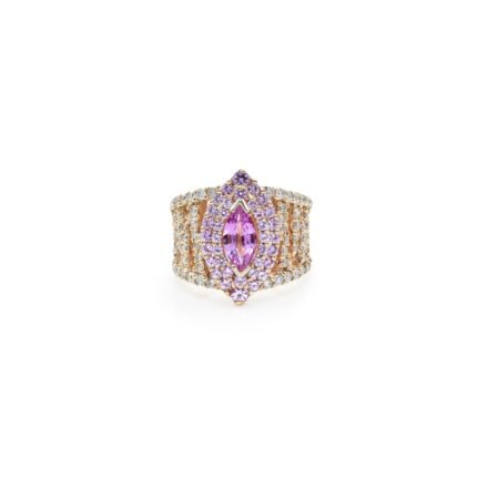 14K Solid Gold Pink Sapphire and Diamond Swirl Ring