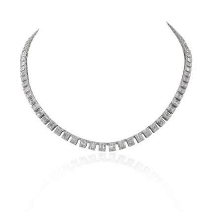 This 18k Gold Lab-Grown Diamond Necklace features 32.48ct of dazzling diamonds, set in an elegant design. Available in white, rose, and yellow gold, it is IGI & BIS hallmarked for authenticity.
