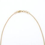 Surrounding the blue topaz are 9 diamonds, adding a touch of luxury and sophistication. The diamonds are carefully set in a prong setting, allowing maximum light to enter and enhance their brilliance. The contrast between the blue topaz and diamonds creates a harmonious balance of color and sparkle, elevating the necklace’s overall allure.