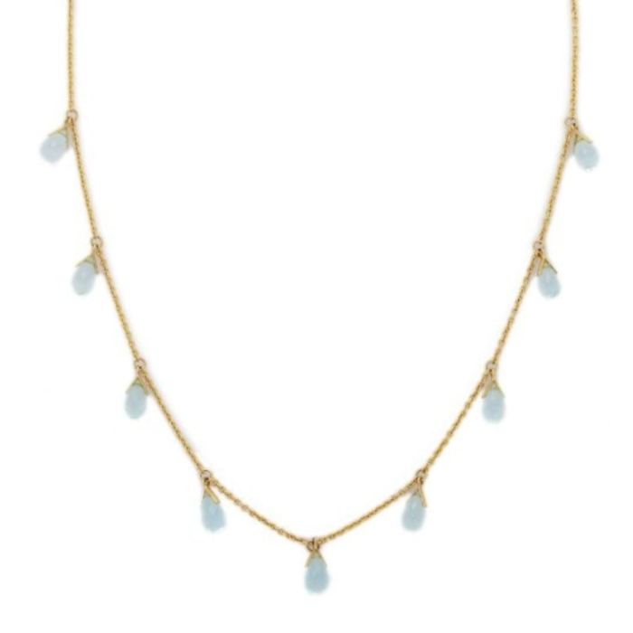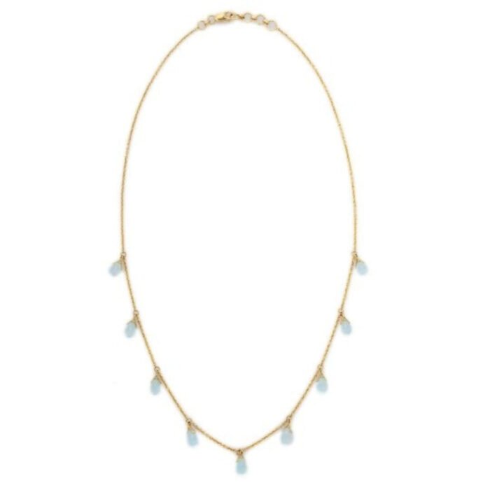 3 reviews for 14K Solid Gold Blue Topaz Drop Chain Necklace