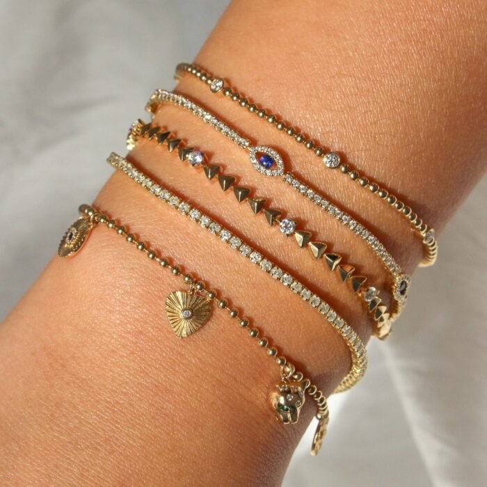 Crafted from premium 14KT gold, the bracelet showcases a minimalist design that highlights the brilliance of the diamonds. The ball bezel setting enhances the diamonds’ sparkle while providing a secure and stylish frame. With VS1 clarity and F color, the diamonds offer a brilliant and clear appearance, reflecting light beautifully.