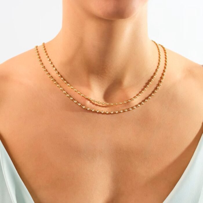 Crafted from high-quality 14K solid gold, the necklace guarantees both durability and luxury, ensuring it remains a cherished piece in your jewelry collection for years to come. The secure clasp provides a comfortable and reliable fit, allowing you to wear the necklace with confidence, whether you’re attending a glamorous evening event or adding a touch of sparkle to your everyday attire.