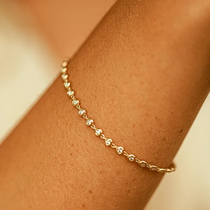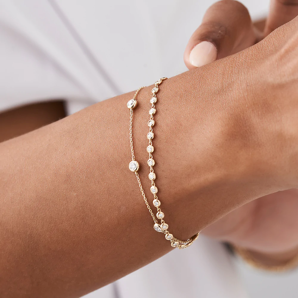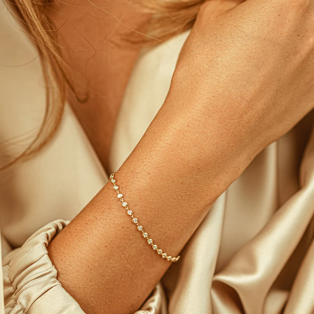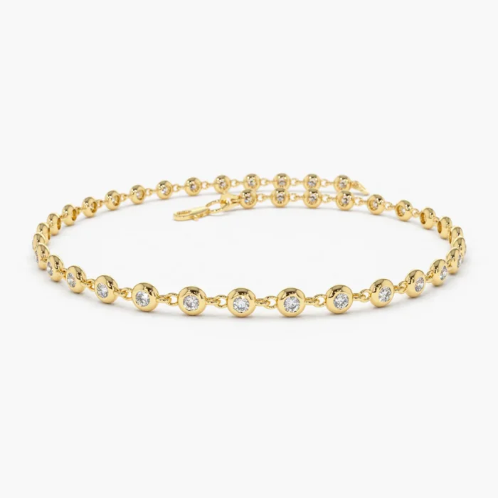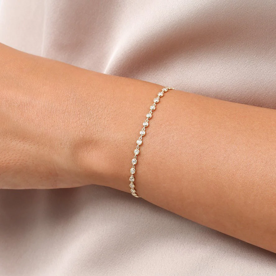 This bracelet has lab-grown diamonds elegantly encased in a secure bezel setting. The bezel design increases the brilliance of the diamonds and provides a sleek and contemporary look. The lab-grown diamonds offer the same sparkling shine as natural diamonds, making this bracelet an eco-friendly choice without sacrificing luxury.