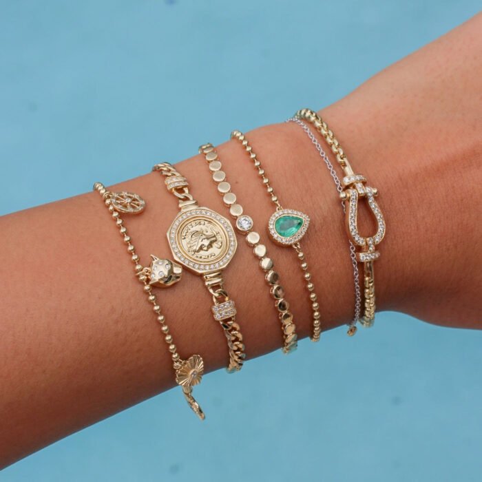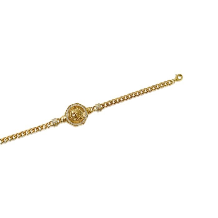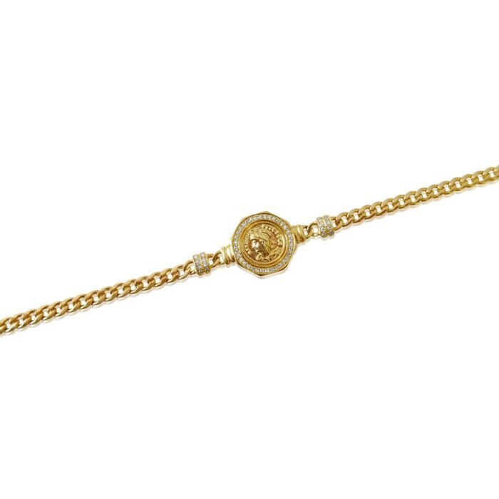 The diamonds are set with precision, offering a brilliant sparkle that enhances the coin’s detailed design. Each diamond is of VS1 clarity and F color, ensuring exceptional brilliance and quality. The Cuban link chain adds a modern edge to the bracelet, making it a versatile accessory that can be dressed up or down.