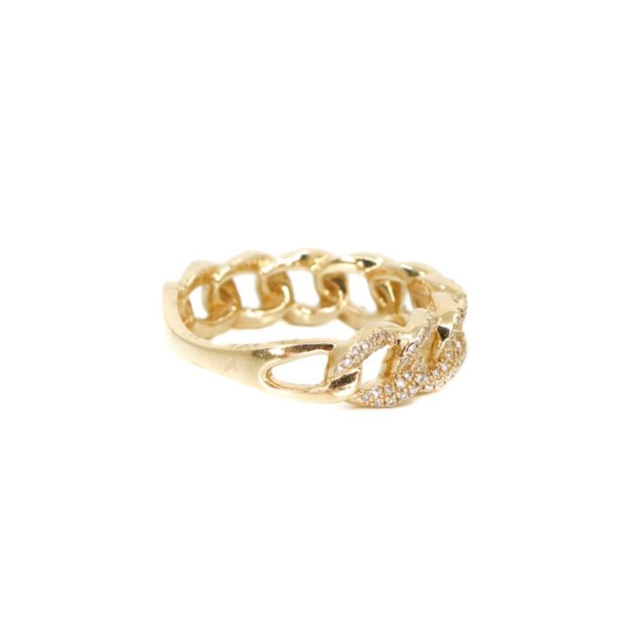 Bold 14K gold Cuban link ring with diamond accents. Available in yellow, rose, or white gold.