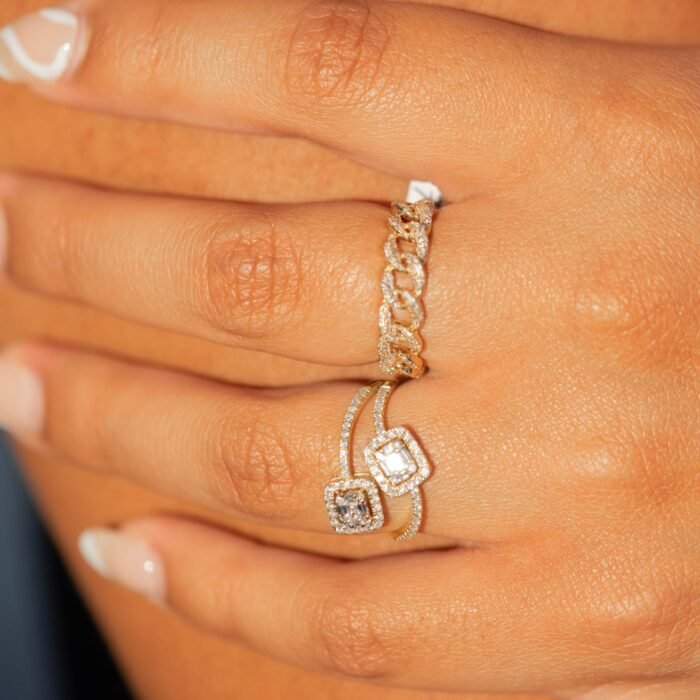 The 14K Gold Diamond Cuban Link Ring is a bold fusion of classic design and modern luxury. This striking ring features the iconic Cuban link pattern, beautifully adorned with brilliant diamonds for a touch of sparkle and sophistication. The diamonds are expertly set within the links, creating a seamless blend of elegance and strength. Crafted from premium 14K gold and available in yellow gold, rose gold, or white gold, this ring makes a statement whether worn alone or stacked with other rings.