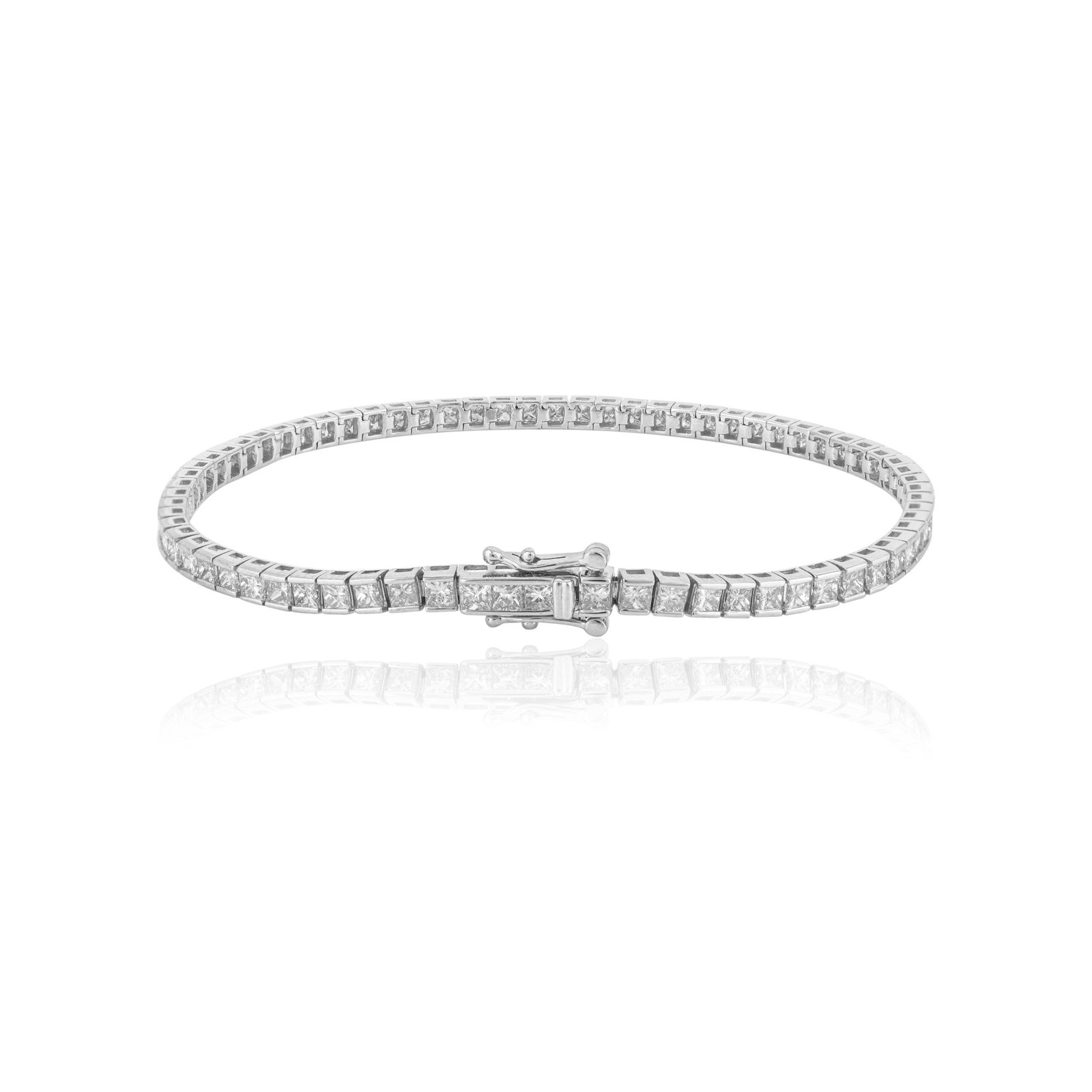Each diamond, measuring 2.5 mm, is meticulously set to create a continuous sparkle that runs along the length of the bracelet. The classic design and secure setting ensure that each diamond is showcased beautifully while allowing light to enhance their brilliance.