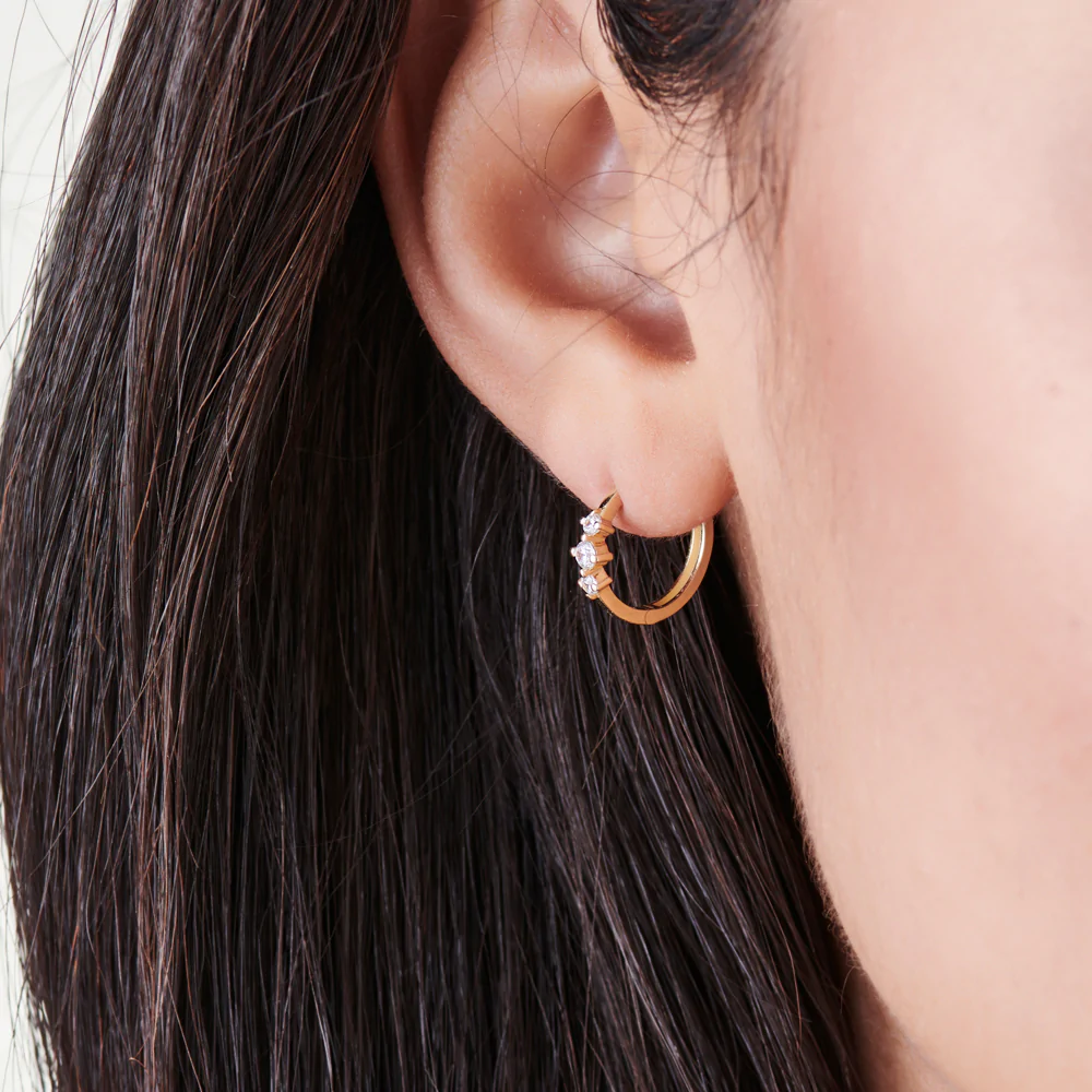Elevate your style with our Natural Diamond Pyramid Huggies, featuring solid gold spikes adorned with sparkling natural diamonds.