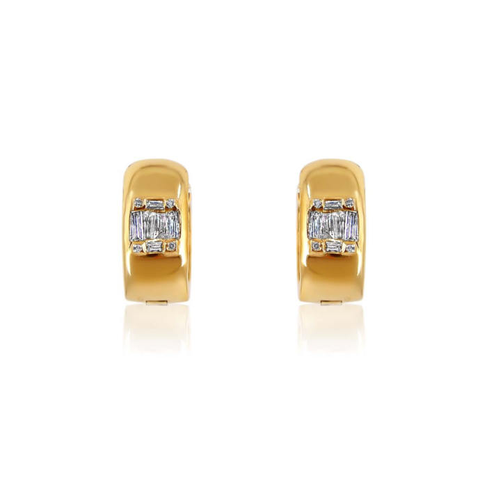 - Elegant Baguette Cut: Known for its clean lines and modern feel, the baguette cut brings a geometric elegance to the classic hoop design.
