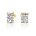 Crafted from premium 14KT gold, the earrings showcase the diamonds in a classic emerald-cut design that highlights their exceptional clarity and sparkle. The emerald cut, known for its step-cut facets and rectangular shape, adds a touch of vintage charm while providing a modern, sleek look. This cut emphasizes the diamond’s clarity and allows for a stunning display of light.