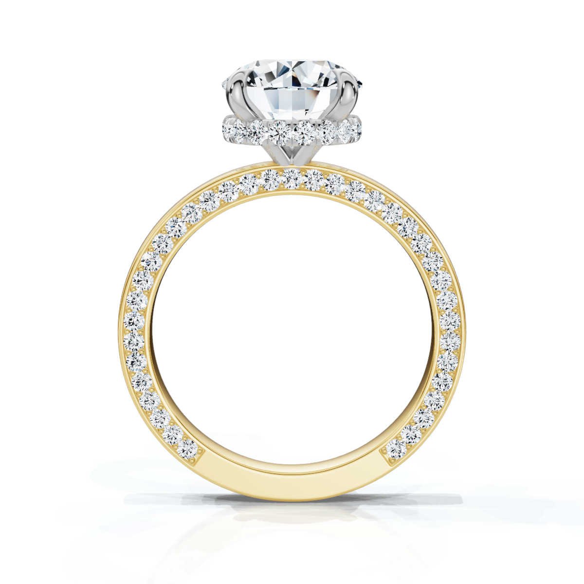 The Karat Store's Round Cut Halo Solitaire Ring features a 2 ct lab-grown diamond, available in 14K rose, yellow, or white gold. Ethical elegance with VVS-VS clarity and E-F colour.