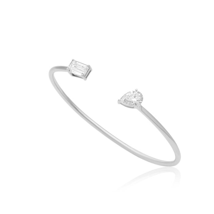 This Gold Lab Grown Pear and Baguette Bangle features lab grown diamonds set in 14k White Gold.