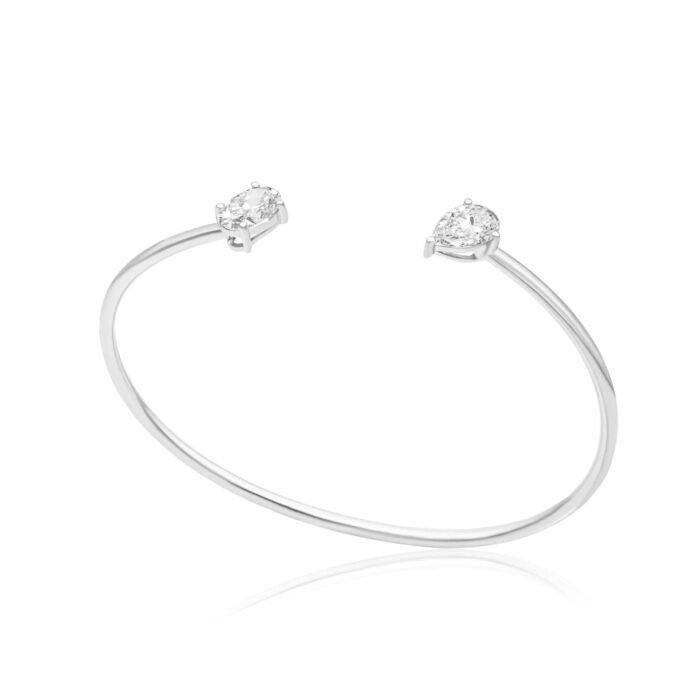 This Gold Lab Grown Pear and Oval Bangle features lab grown diamonds set in 14k White Gold.