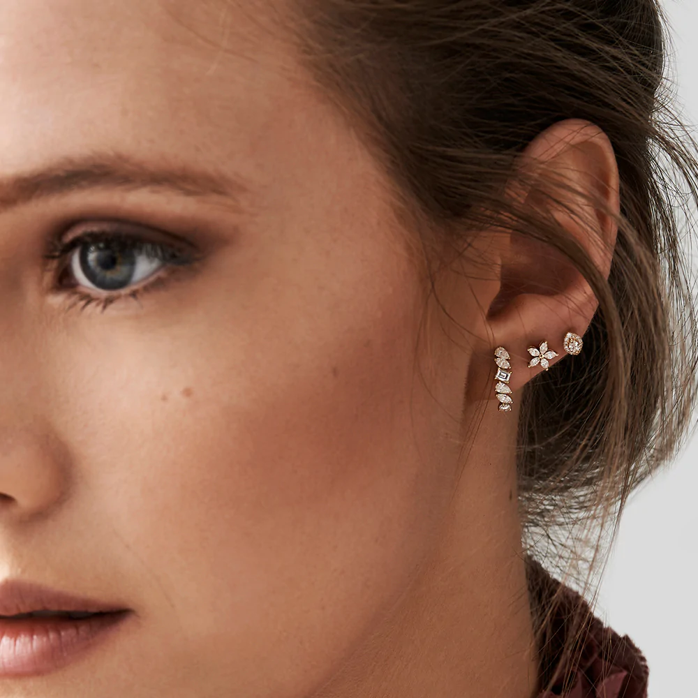 The 14k Gold Mixed Natural Diamond Shapes Statement Stud Earrings are a unique, elegant accessory that combines several diamond shapes to create a striking and bold look.