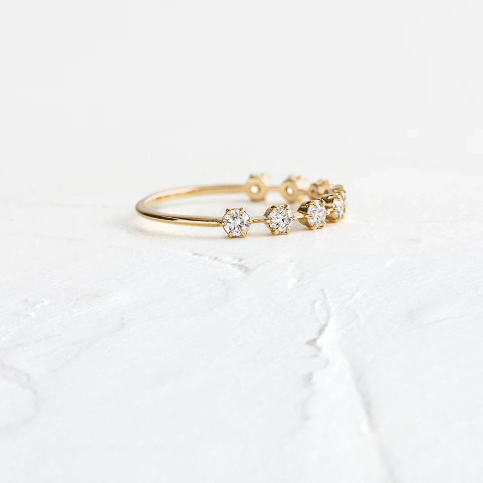 “Elegant 14K Gold Moissanite Diamond Distance Band – a modern design with Moissanite diamonds spaced along the band, perfect for a sophisticated, timeless style.”