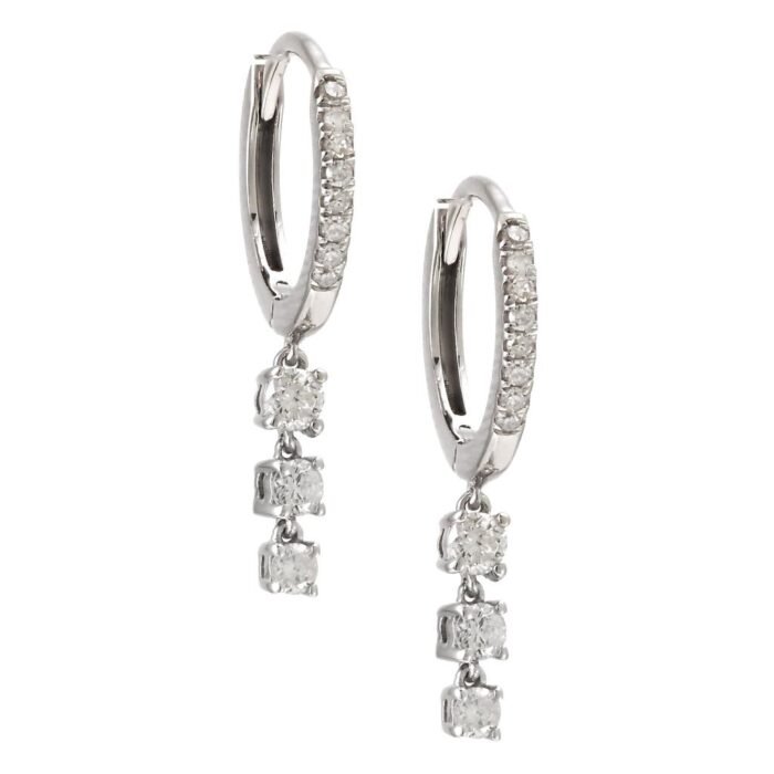 14K Gold Diamond Graduated Triple Drop Hoop Earring