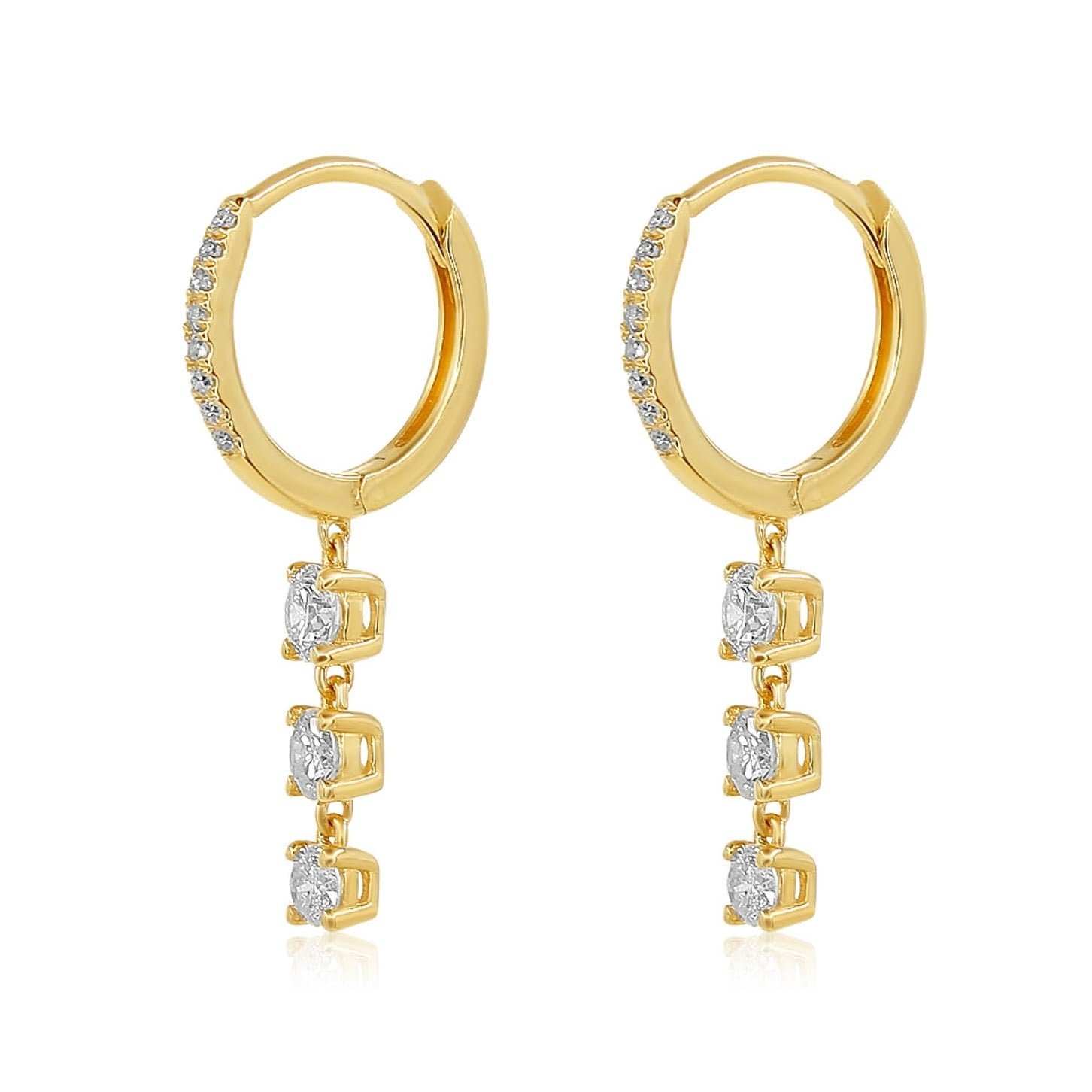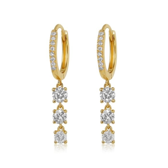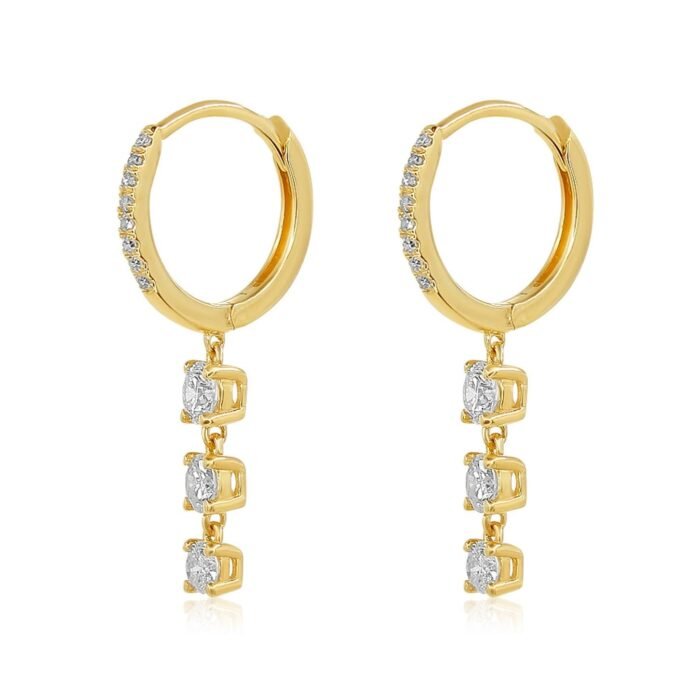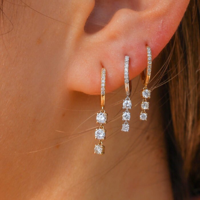 14K Gold Moissanite Diamond Graduated Triple Drop Hoop Earring