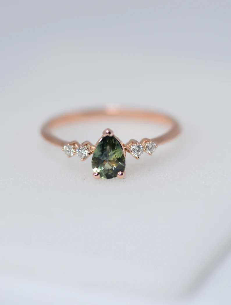 14K Gold Montana Sapphire Pear Shaped Engagement Ring