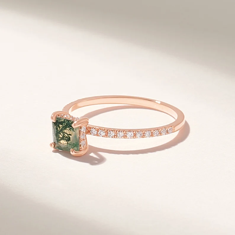 Whether chosen as a one-of-a-kind engagement ring, a personal talisman, or a statement piece, this ring brings a natural, earthy charm that’s unlike anything else. Each piece is uniquely yours—no two moss agates are ever the same.