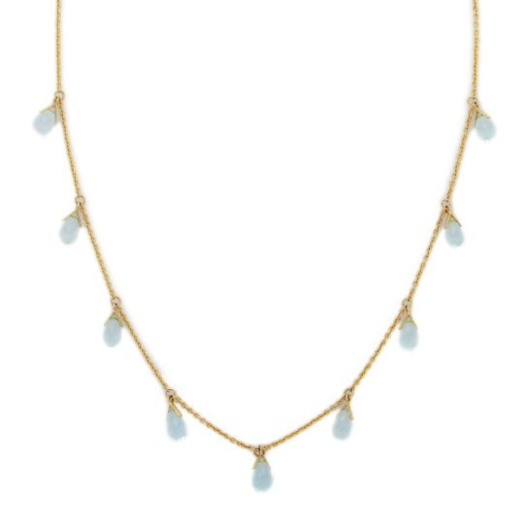 Delicate 14K solid gold chain necklace with a sparkling blue topaz drop. A graceful design that adds elegance and serenity to any outfit.
