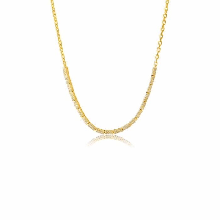 14K Gold Pave Diamond Rectangle Bar Tennis Necklace