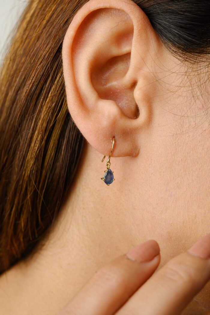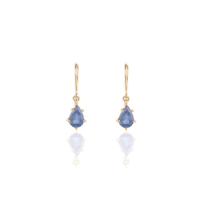 5 reviews for 14K Solid Gold Pear Cut Blue Sapphire Dangle Tiny Earrings