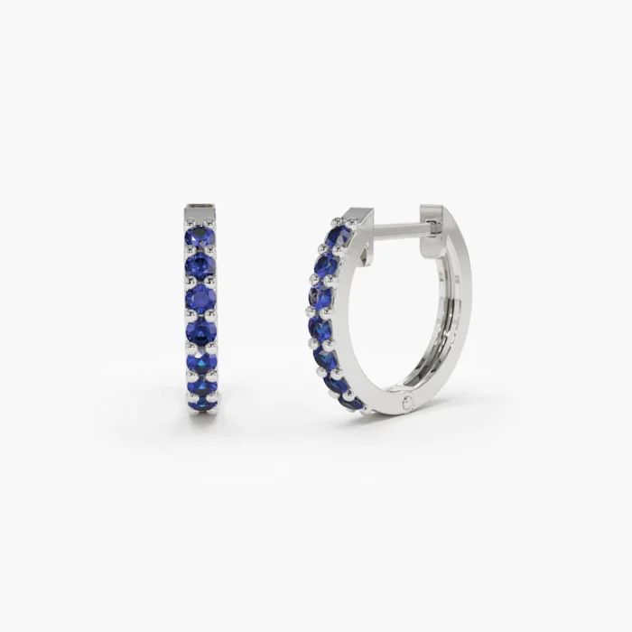 Chic 14K solid gold huggie hoop earrings featuring rich blue sapphires—crafted for everyday elegance, vibrant charm, and timeless appeal.