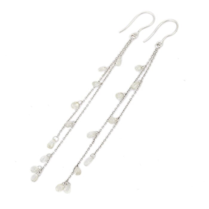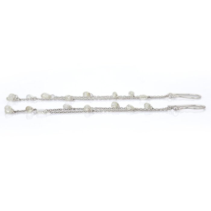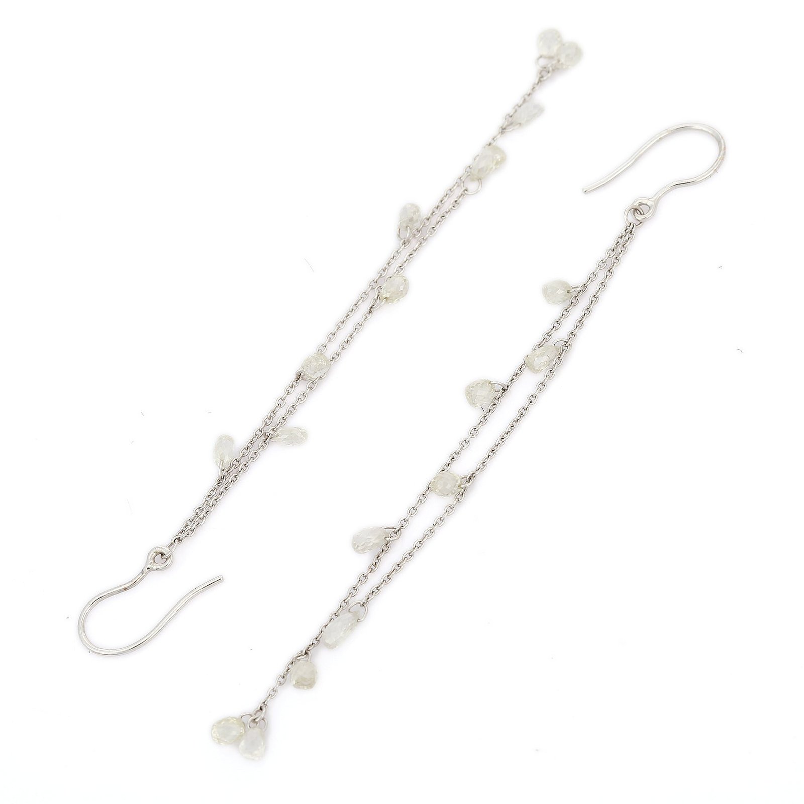 Weighing 1.824 grams, the earrings are lightweight yet substantial enough to make a statement. The duster chain design offers a sense of movement and refinement, making these earrings suitable for both formal occasions and everyday elegance. The combination of high-quality diamonds and white gold ensures that the earrings are not only beautiful but also durable.