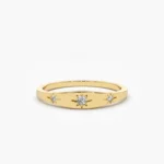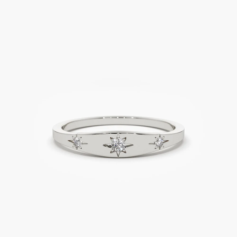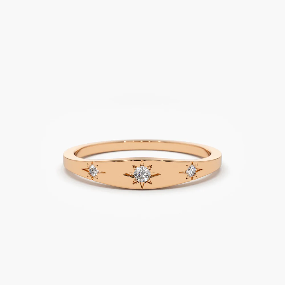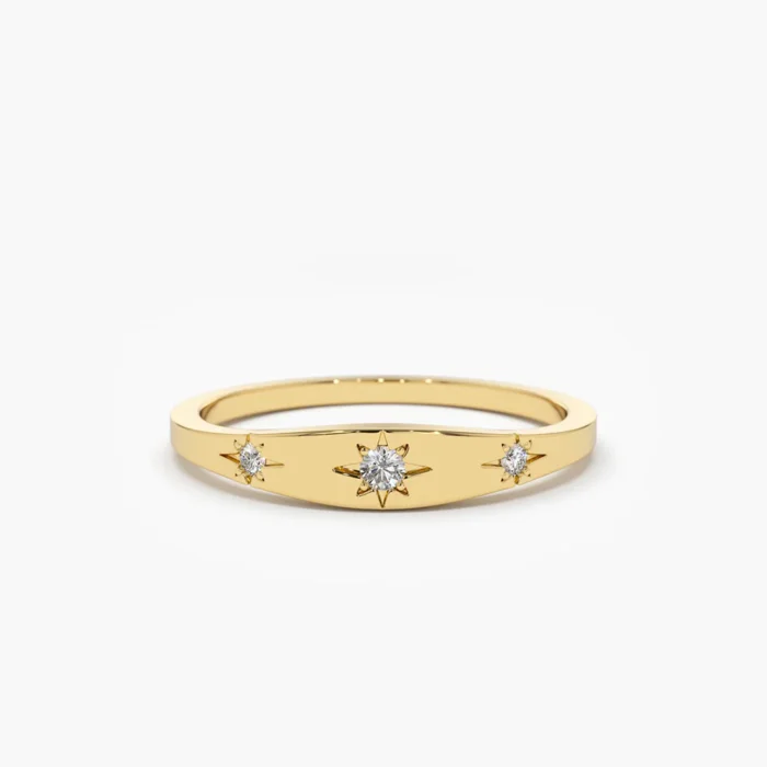 14K Gold Star Setting 3 Natural Diamond Stacking Ring