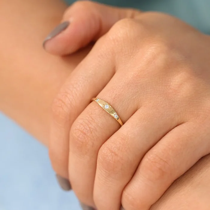 14K solid gold stacking ring with 3 natural round diamonds (GH COLOR, VS-SI Clarity), star-set, BIS hallmarked and GIA standard certified.