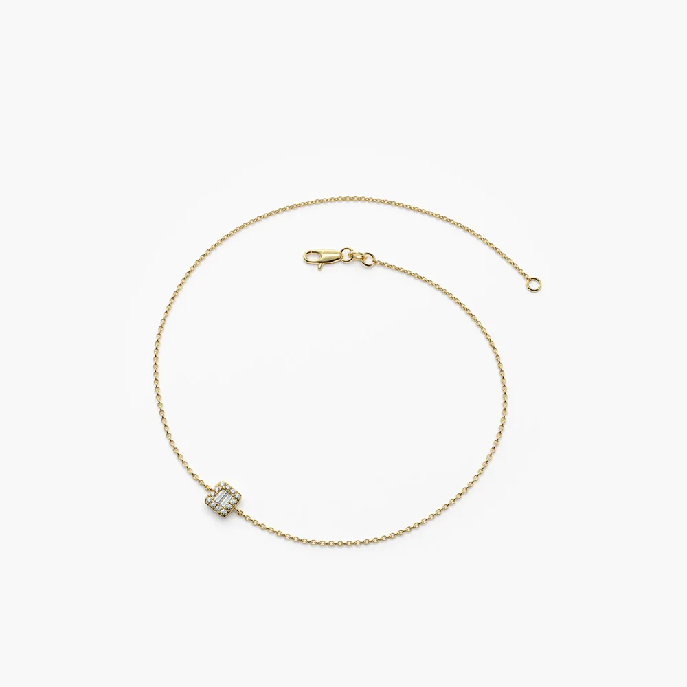 14K Gold Tiny Baguette and Round Lab-Grown Diamond Station Bracelet
