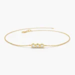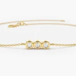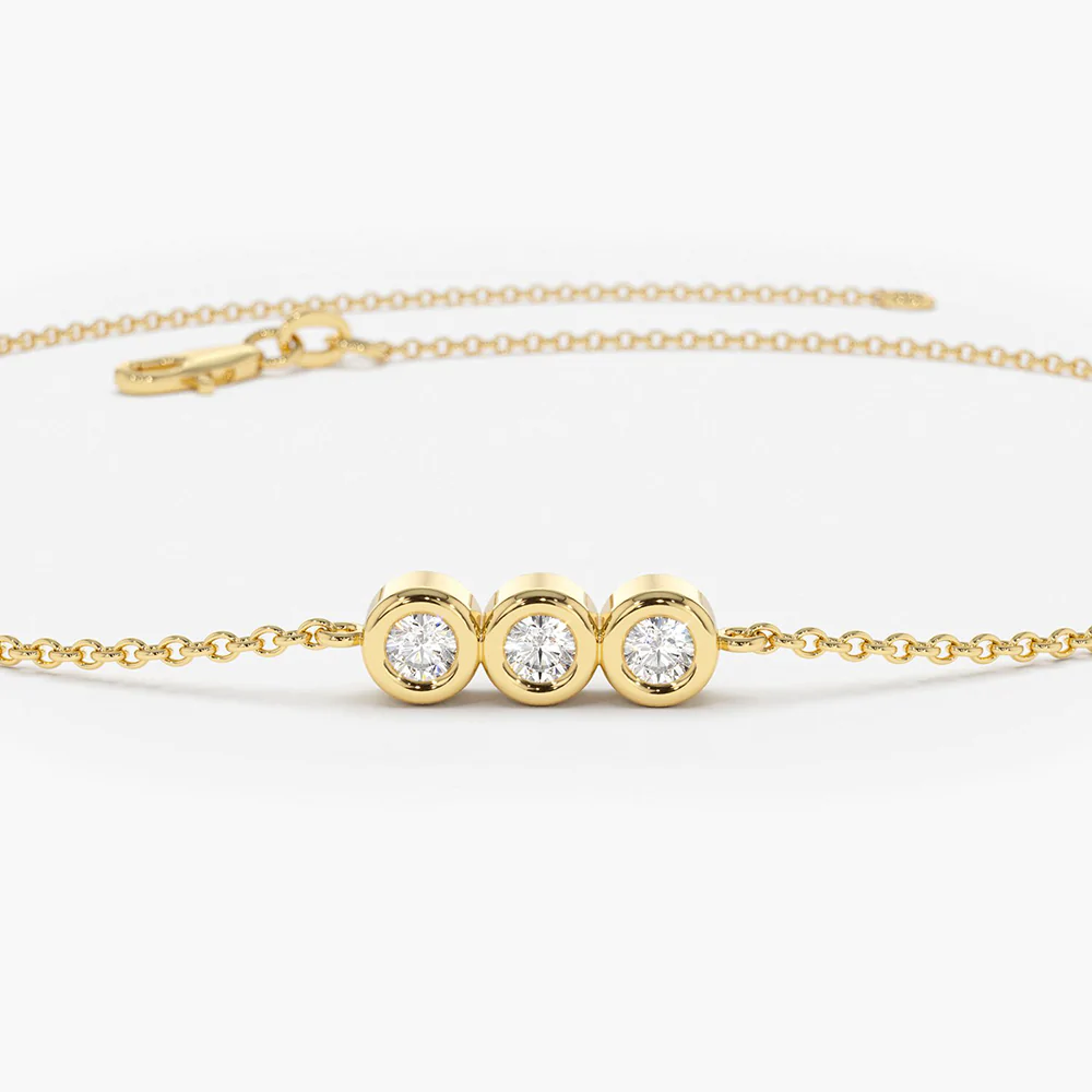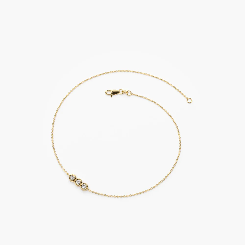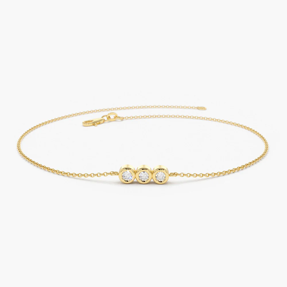 The 14K Gold Trio Lab-Grown Diamond Bracelet with Thin Chain features three outstanding lab-grown diamonds mounted onto a dainty gold chain.