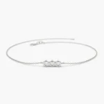 The 14K Gold Trio Lab-Grown Diamond Bracelet showcases three brilliant lab-grown diamonds set on a delicate thin chain. With VS clarity and F color diamonds, this elegant piece is available in white, rose, and yellow gold. BIS Hallmarked for quality assurance, it offers a sleek and modern design, ideal for any occasion. Enjoy shipping within 10-12 business days and customer support via live chats or video calls.