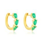 Elegant 14K solid gold hoop earring featuring three pear-shaped emeralds—crafted for timeless charm, rich green brilliance, and graceful style.