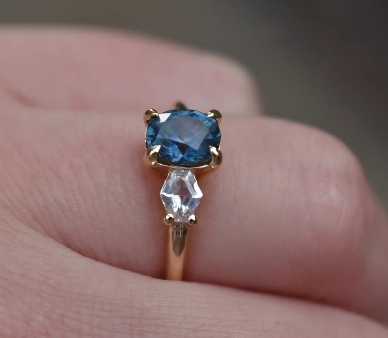 - Central Stone: Natural Teal Blue Montana Sapphire (1.2-1.4 ct)