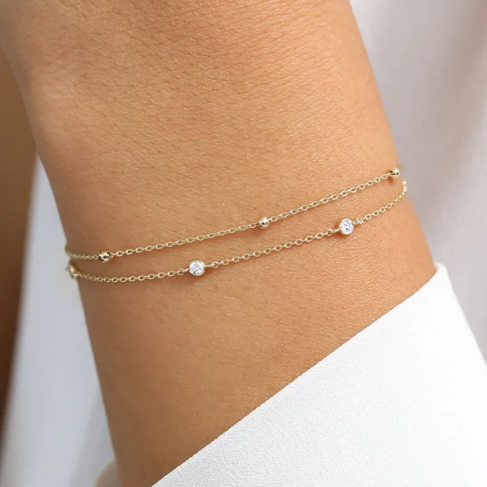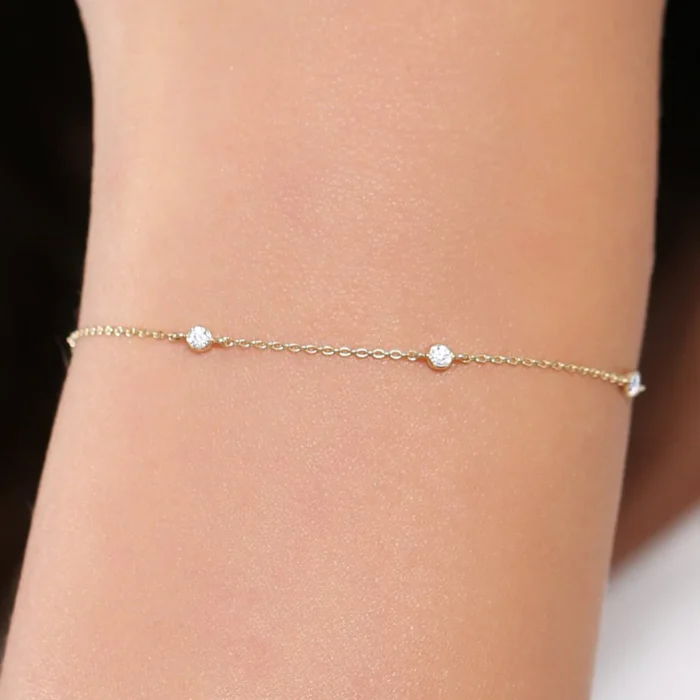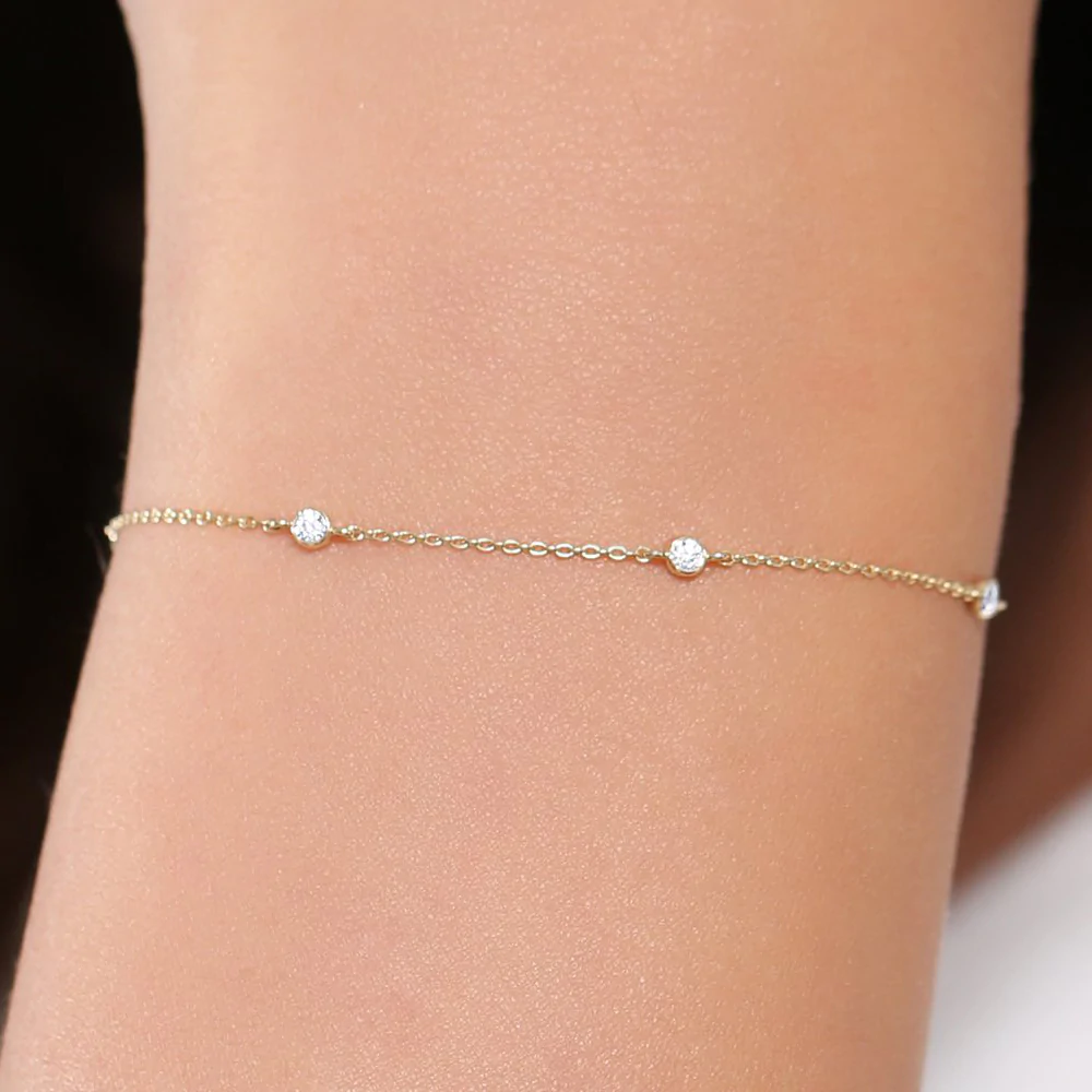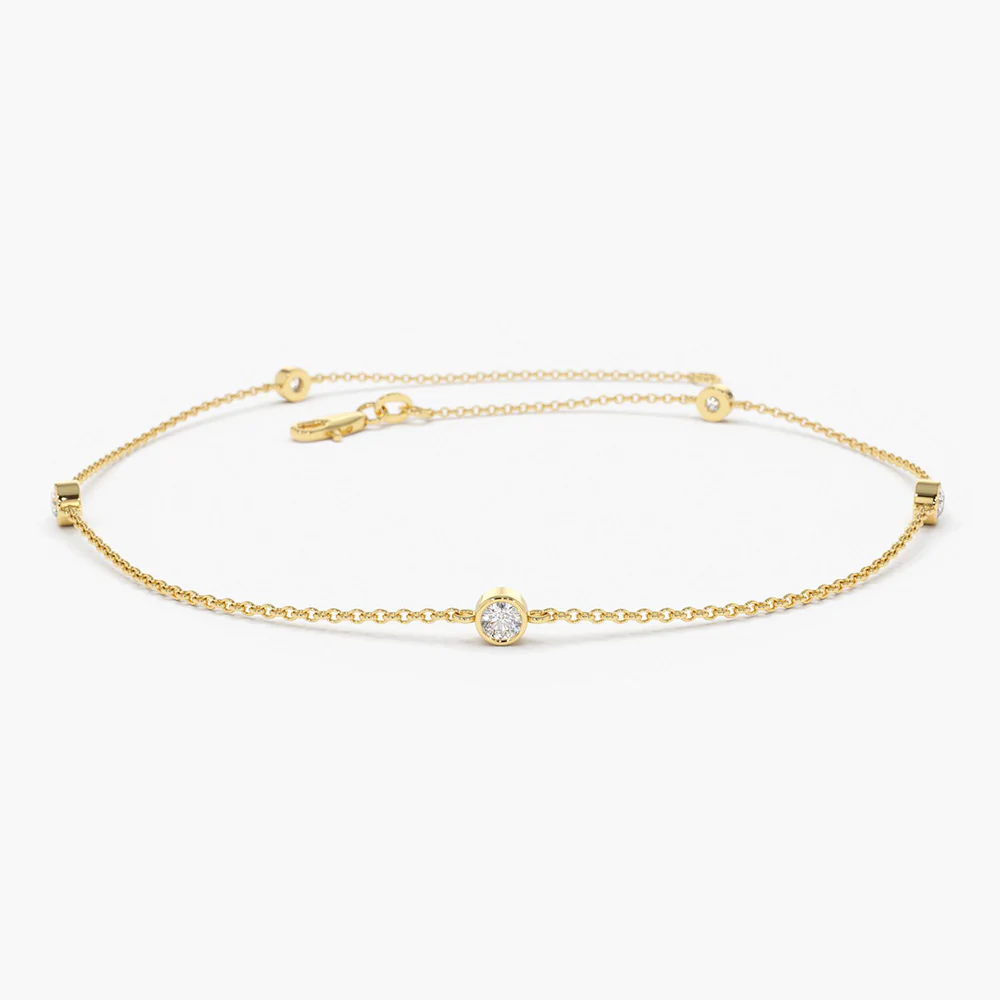 Made in solid premium 14K gold, this bracelet has a beautiful setting of lab-grown diamonds that express superior brilliance and clarity. The delicate design creates settings that will sparkle beautifully against the warm glow of the gold.