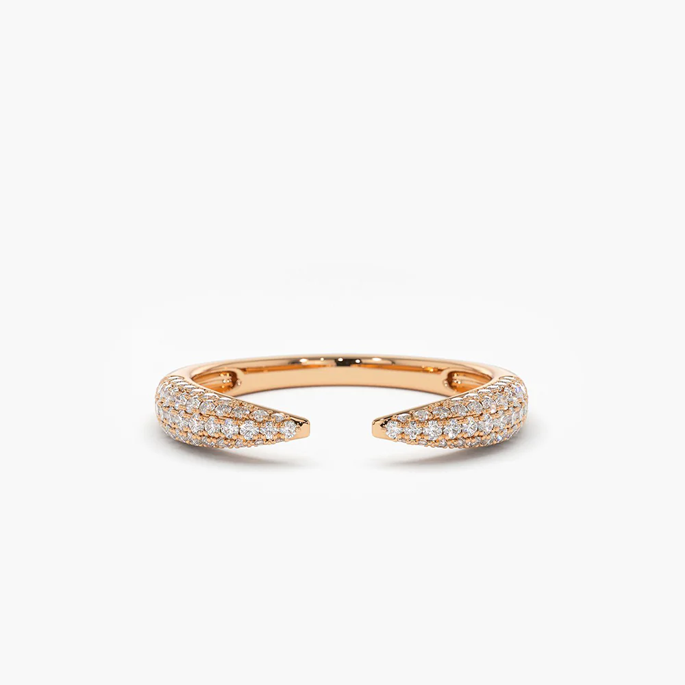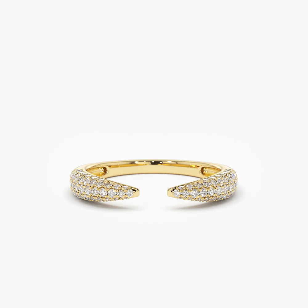 14K solid gold claw ring with 96 micro-pave natural diamonds. GH color, VS-SI clarity. BIS Hallmarked & GIA certified.