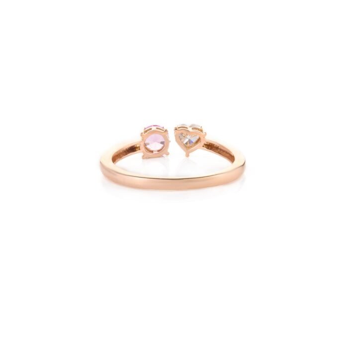 Modern and elegant, this 14K solid gold open ring features pink sapphire and diamond accents—perfect for a chic, romantic statement.