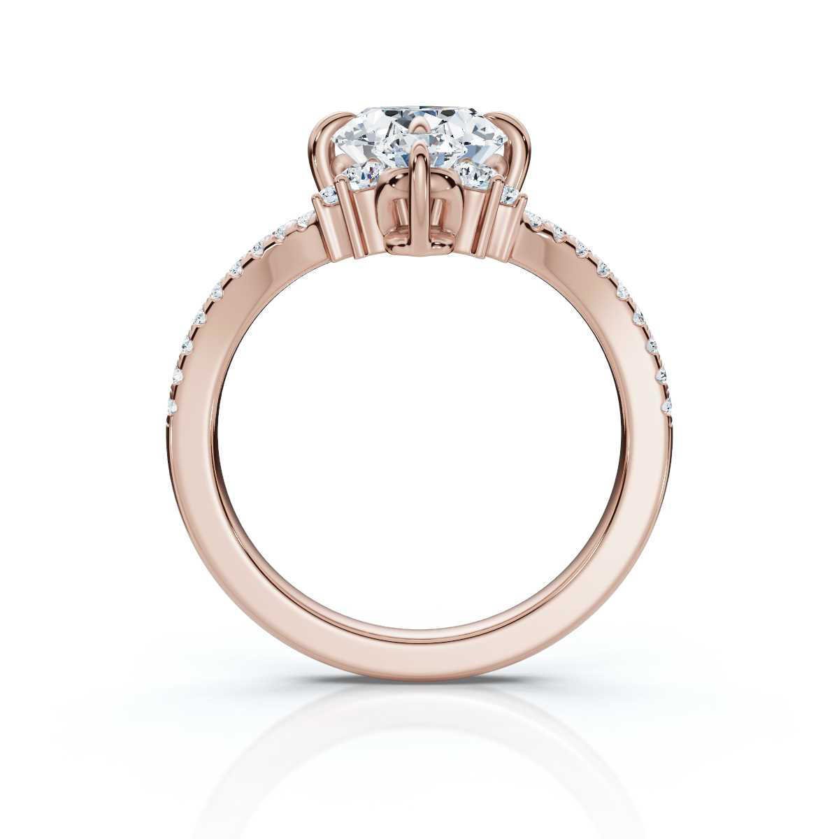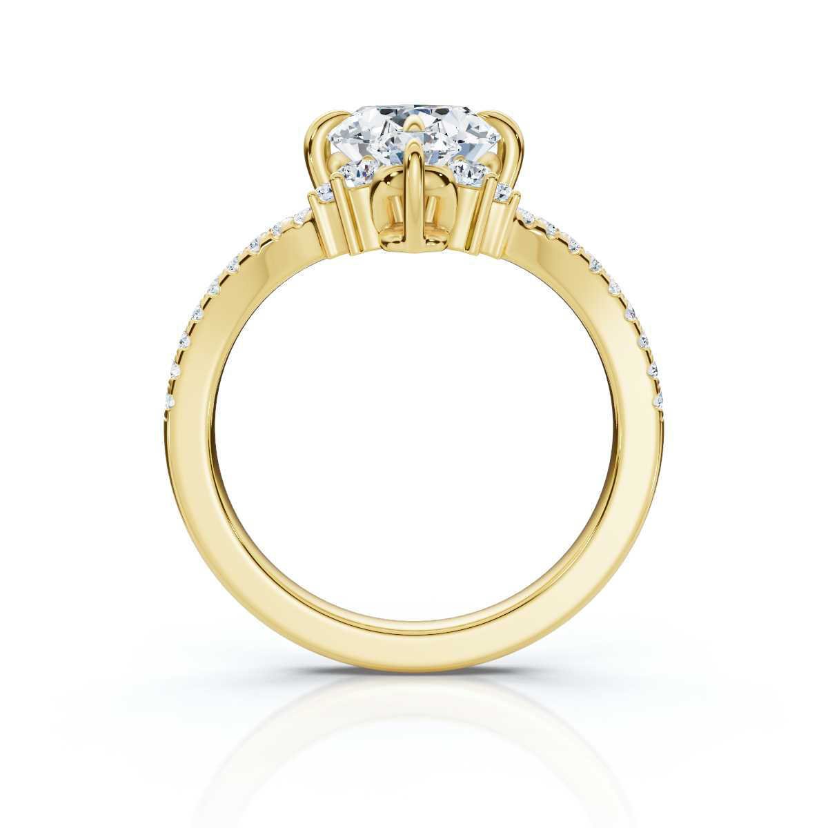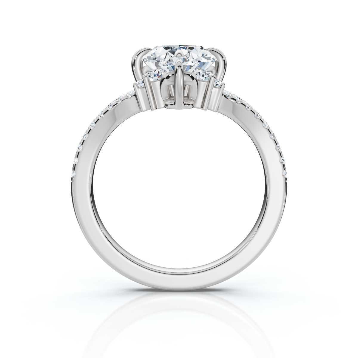 Enhancing the center stone’s allure, 23 round Moissanite diamonds (0.42 ctw) gracefully accentuate the band, adding depth and brilliance to the design. Each side diamond, also graded D color and VVS1 clarity, is meticulously set to amplify the ring’s luxurious appeal. The oval cut offers a flattering elongating effect on the finger, making it a favorite choice for those who appreciate both elegance and uniqueness.