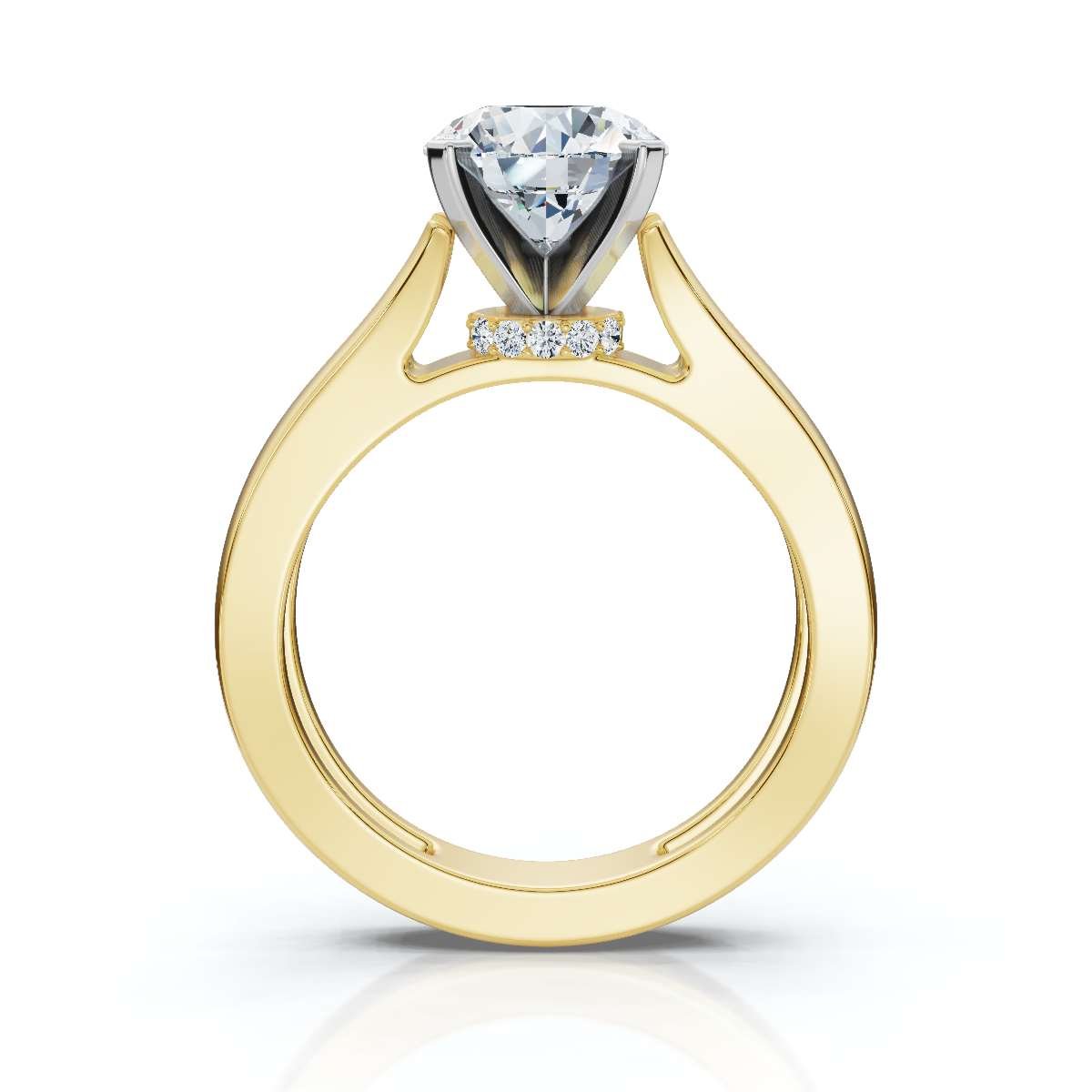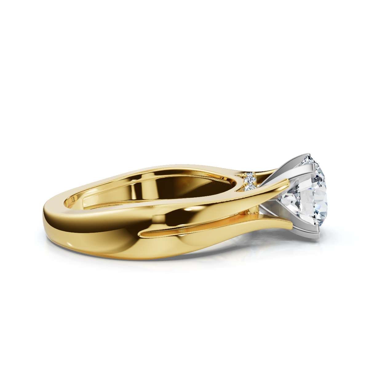 A timeless 2ct round Moissanite solitaire engagement ring in 14K solid gold, featuring 10 princess-cut side diamonds for a touch of brilliance.