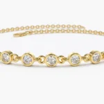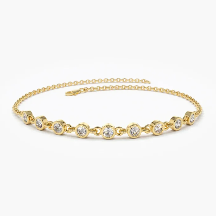 Get yourself this 14K Solid Gold Bezel Set Lab-Grown Diamond Bracelet to enrich your jewelry box. Beautifully crafted out of rich 14K gold, the bezel set features a mesmerizing shine on it and perfectly complements any look. The bezel settings contain lab-grown diamonds; these are intricately positioned and add beauty to these diamonds while simultaneously giving off a modernity feel to it.