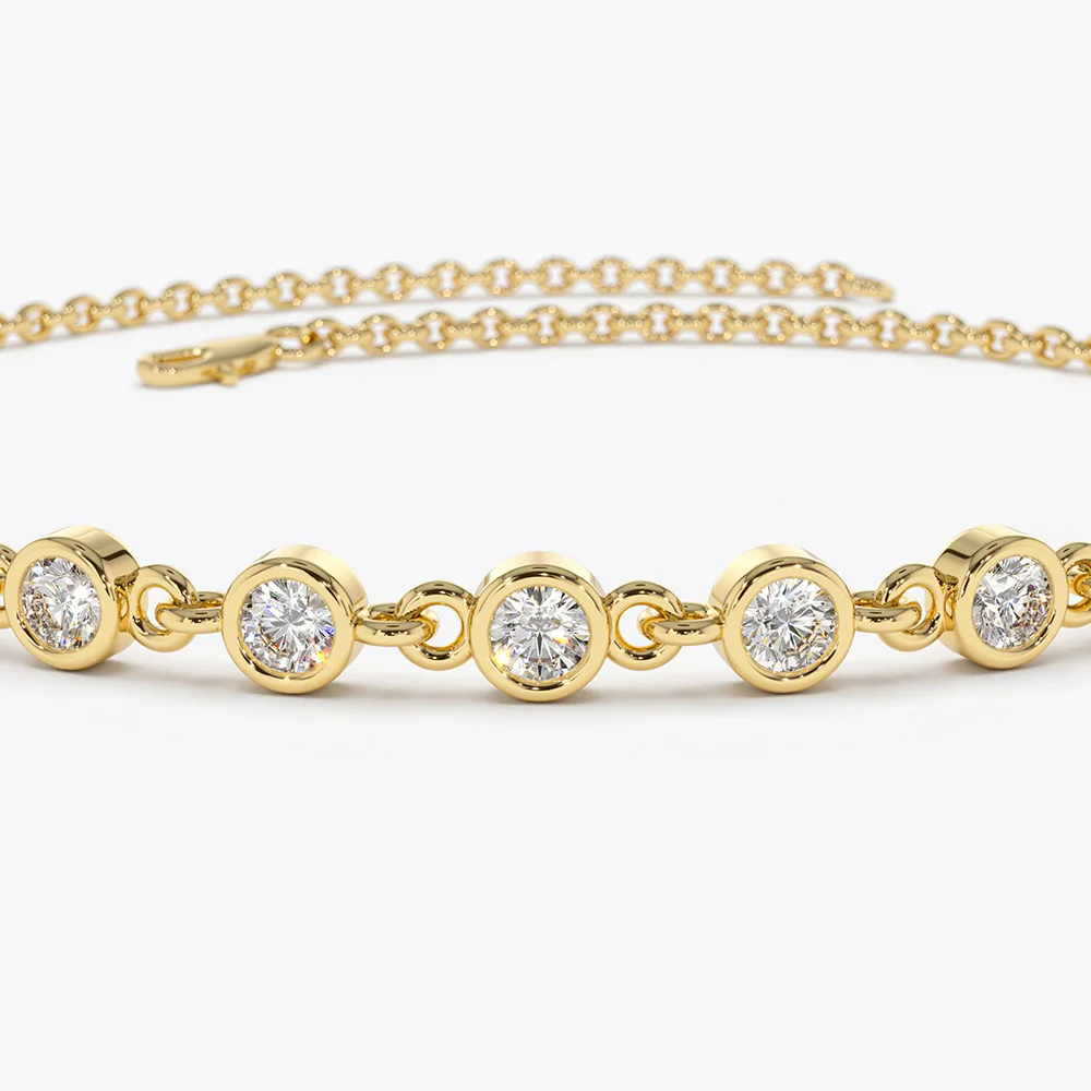 14K Solid Gold Bezel Set Lab-Grown Diamond Bracelet