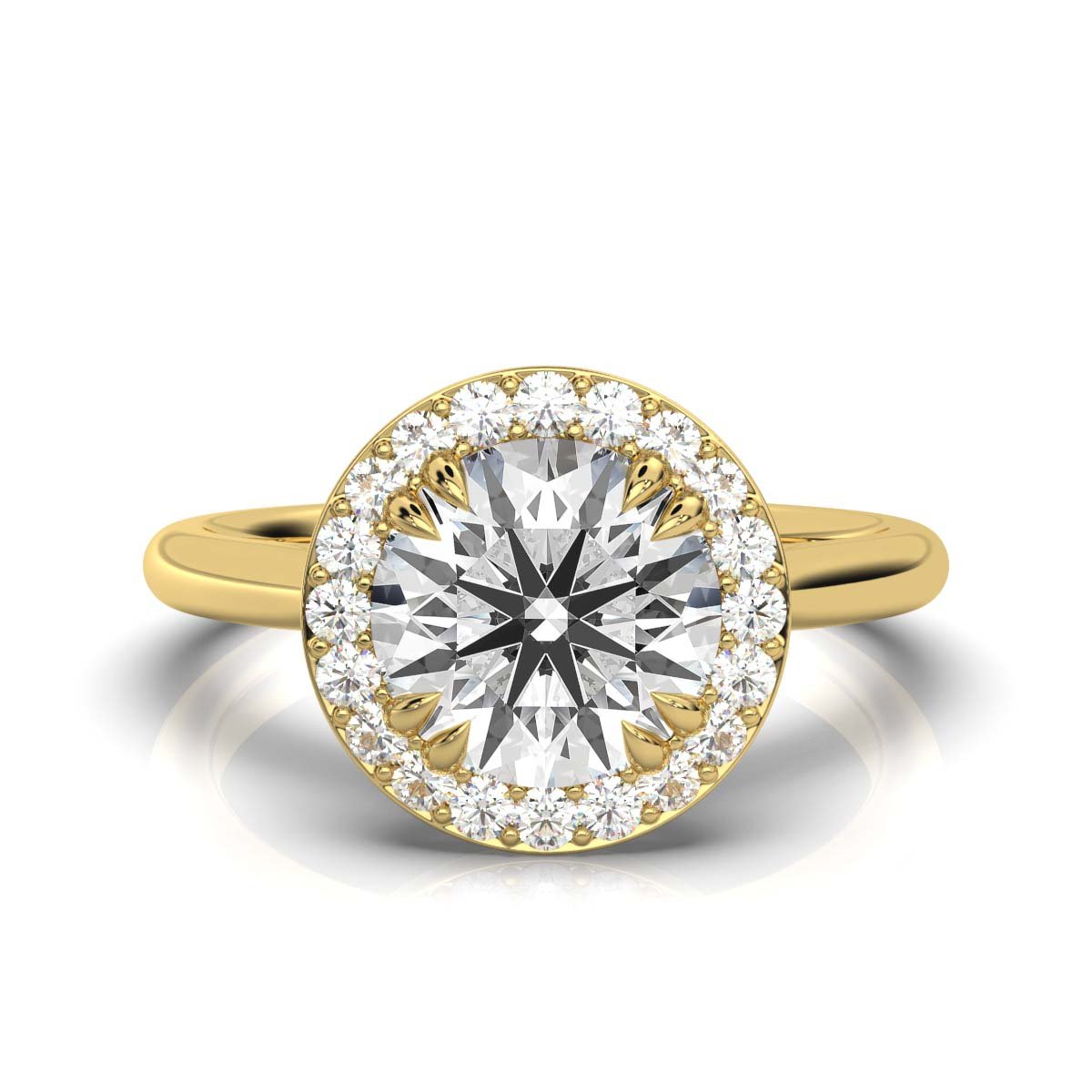 14K Solid Gold Halo Moissanite Diamond Engagement Ring
