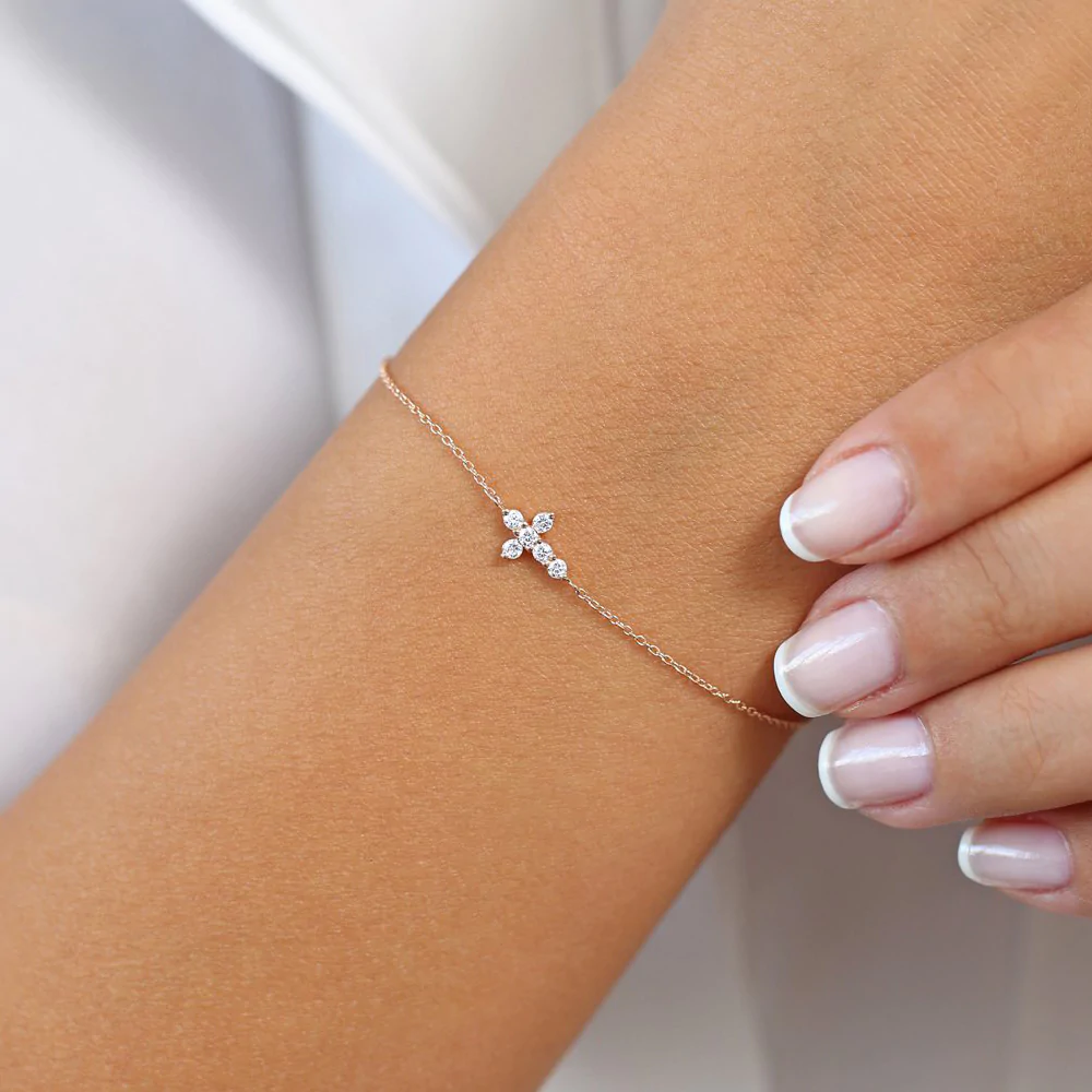 14K Solid Gold Lab-Grown Diamond Cross Bracelet