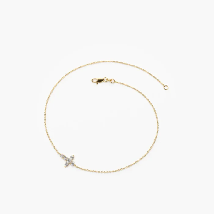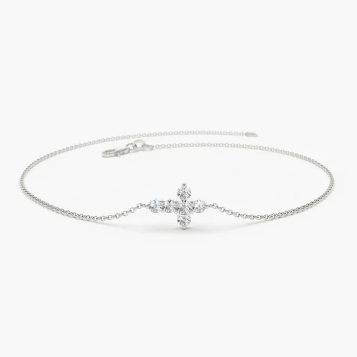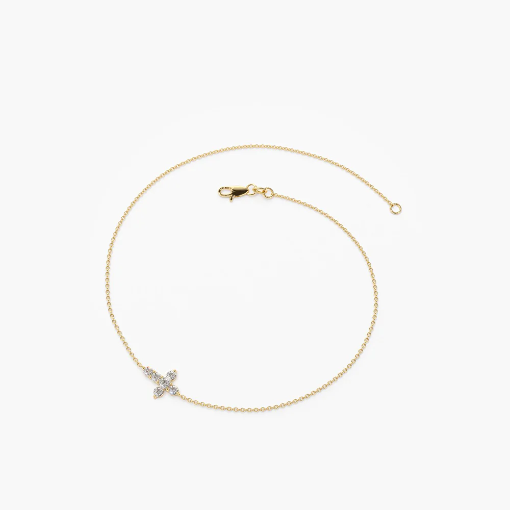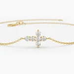 It is made from premium 14K gold and has a well-designed cross pendant encrusted with lab-grown diamonds, ensuring a brilliant sparkle while being eco-friendly. The VS clarity of the diamonds and their F color enhance the overall luxurious appeal, making this bracelet a perfect accessory for both everyday wear and special occasions.