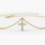 The 14K Solid Gold Lab-Grown Diamond Cross Charm Bracelet features VS clarity, F color diamonds and is available in white, rose, and yellow gold. Certified with BIS Hallmarked and IGI, with shipping in 10-12 business days. Live chat and video call customer support available.