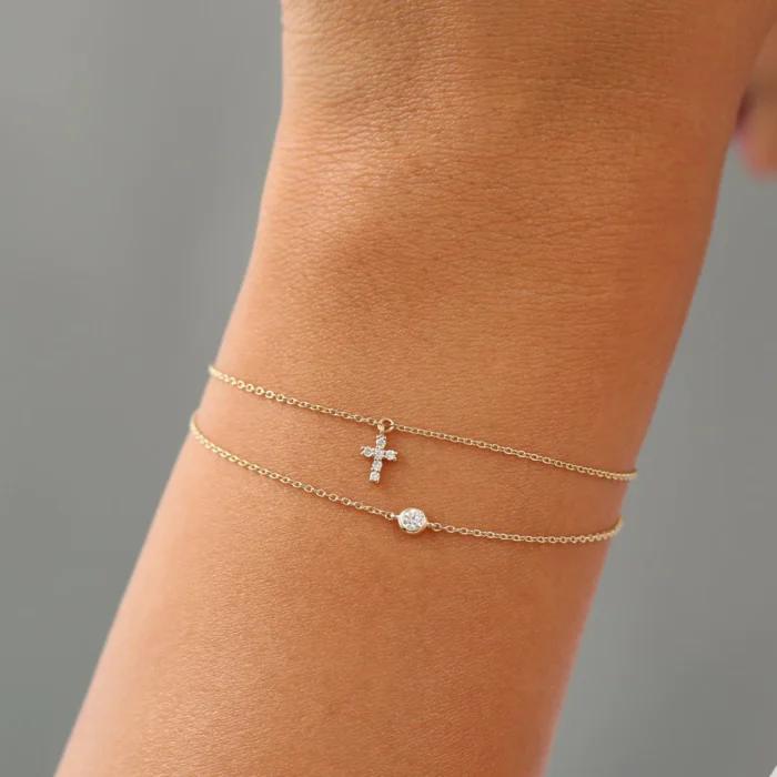 This 14K Solid Gold Lab-Grown Diamond Cross Charm Bracelet is a beautiful combination of elegance and spirituality. The beautiful bracelet features a dainty cross charm, delicately crafted from premium 14K gold, and studded with brilliant lab-grown diamonds that shine with VS clarity and F color.