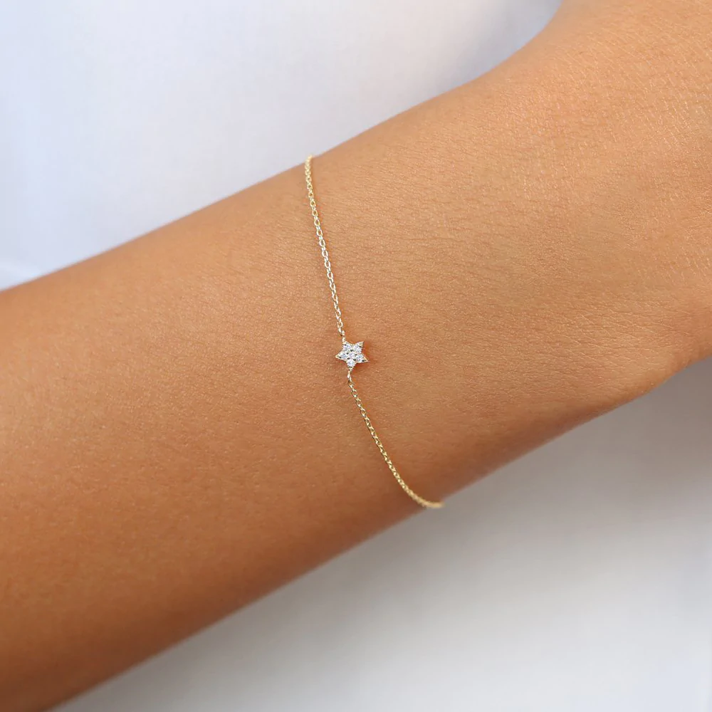 Crafted from 14K solid gold, this delicate yet durable bracelet is available in White, Rose, and Yellow Gold, allowing you to choose a hue that complements your personal style. The intricately designed star charm symbolizes dreams, hope, and inspiration, making it a meaningful gift for a loved one or a treasured addition to your own collection.