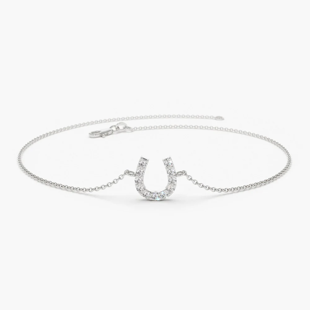 This bracelet is not only elegant but also carries a heavy meaning. The horseshoe is believed to bring fortune, so it is meaningful to give it to loved ones or as a treat to oneself. Whether for a special occasion or for everyday use, the 14K Solid Gold Mini Lab-Grown Diamond Horseshoe Bracelet will shine on any outfit.