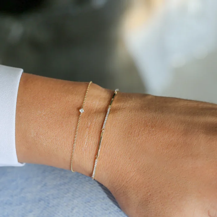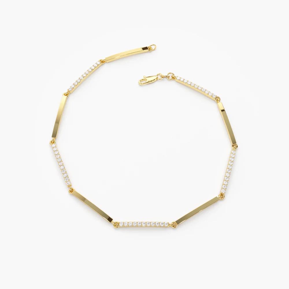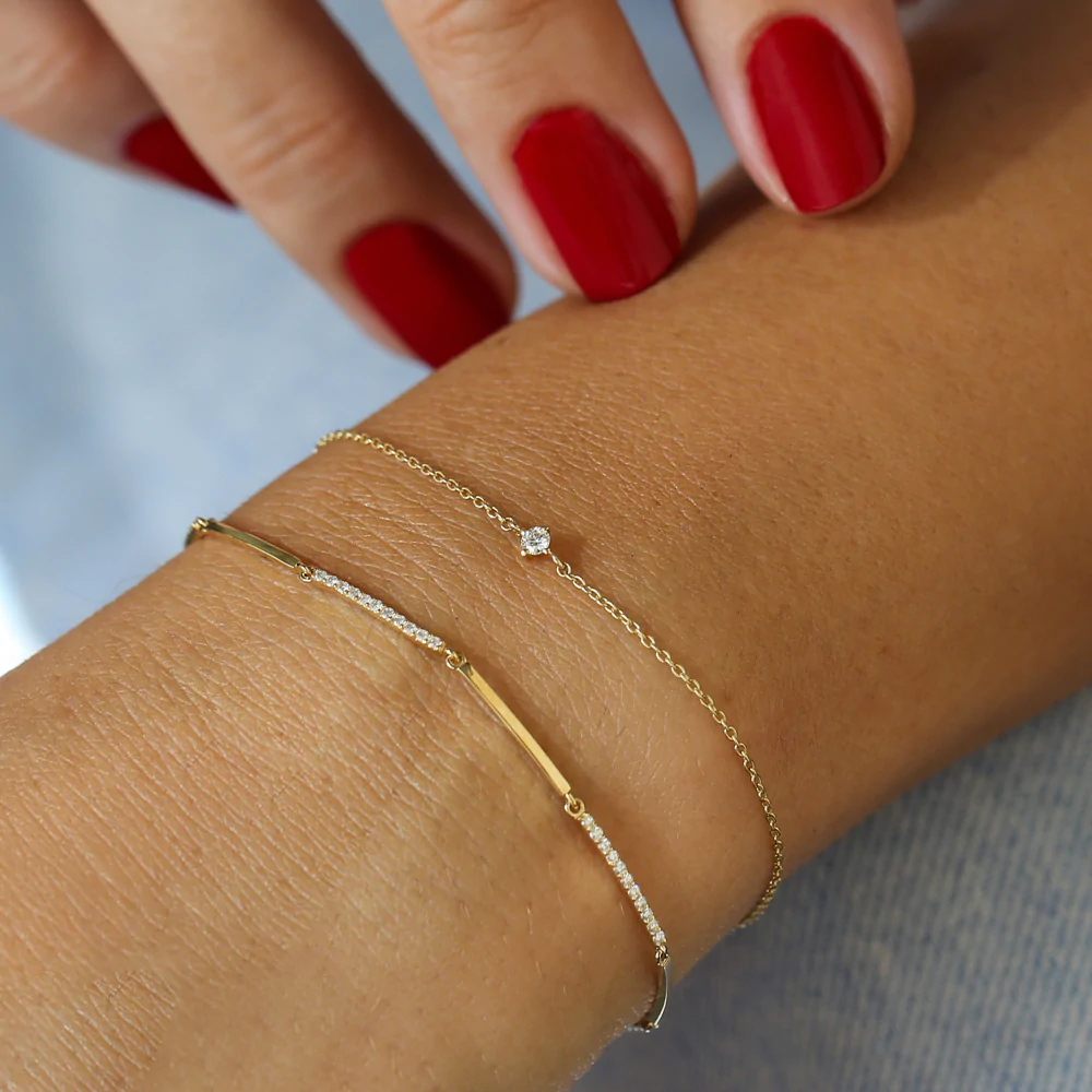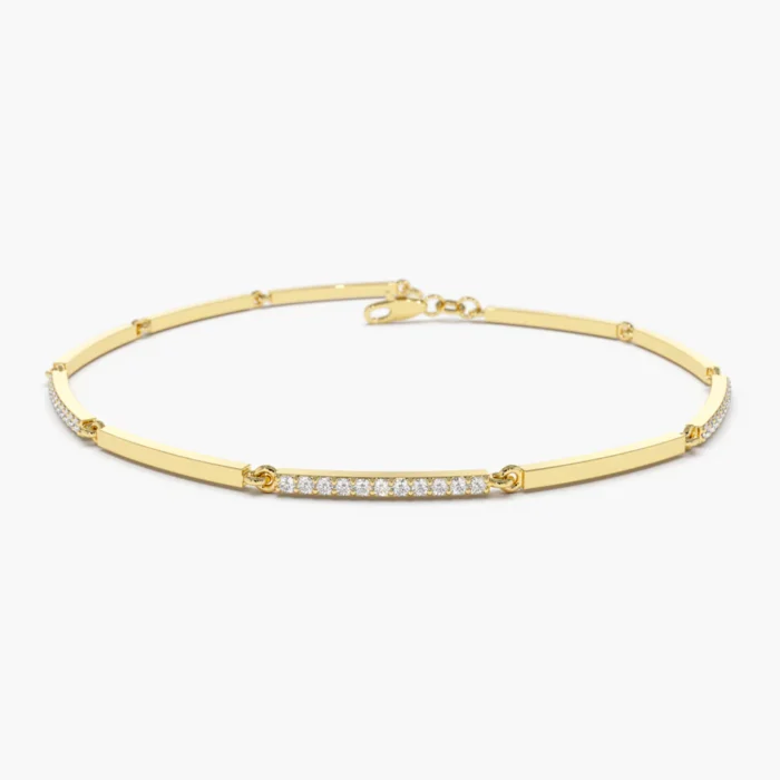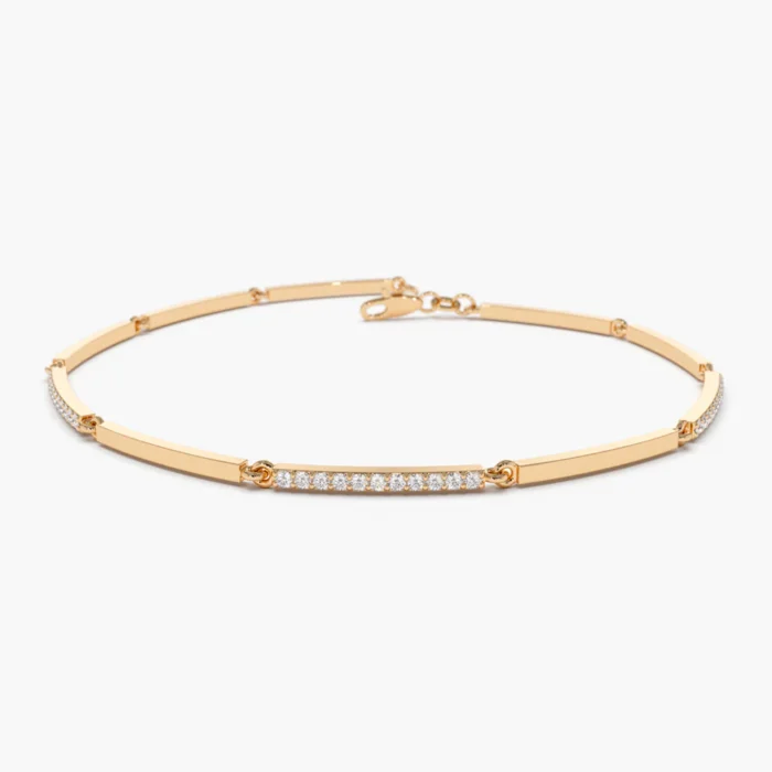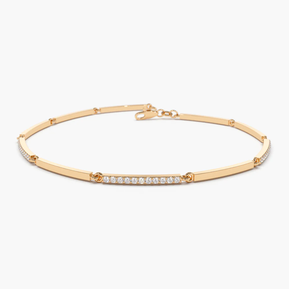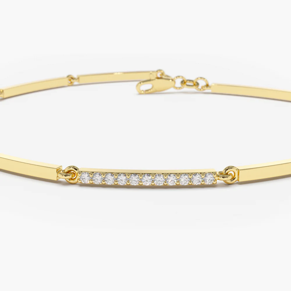 14k Solid Gold Pave Lab-Grown Diamond Bar Bracelet